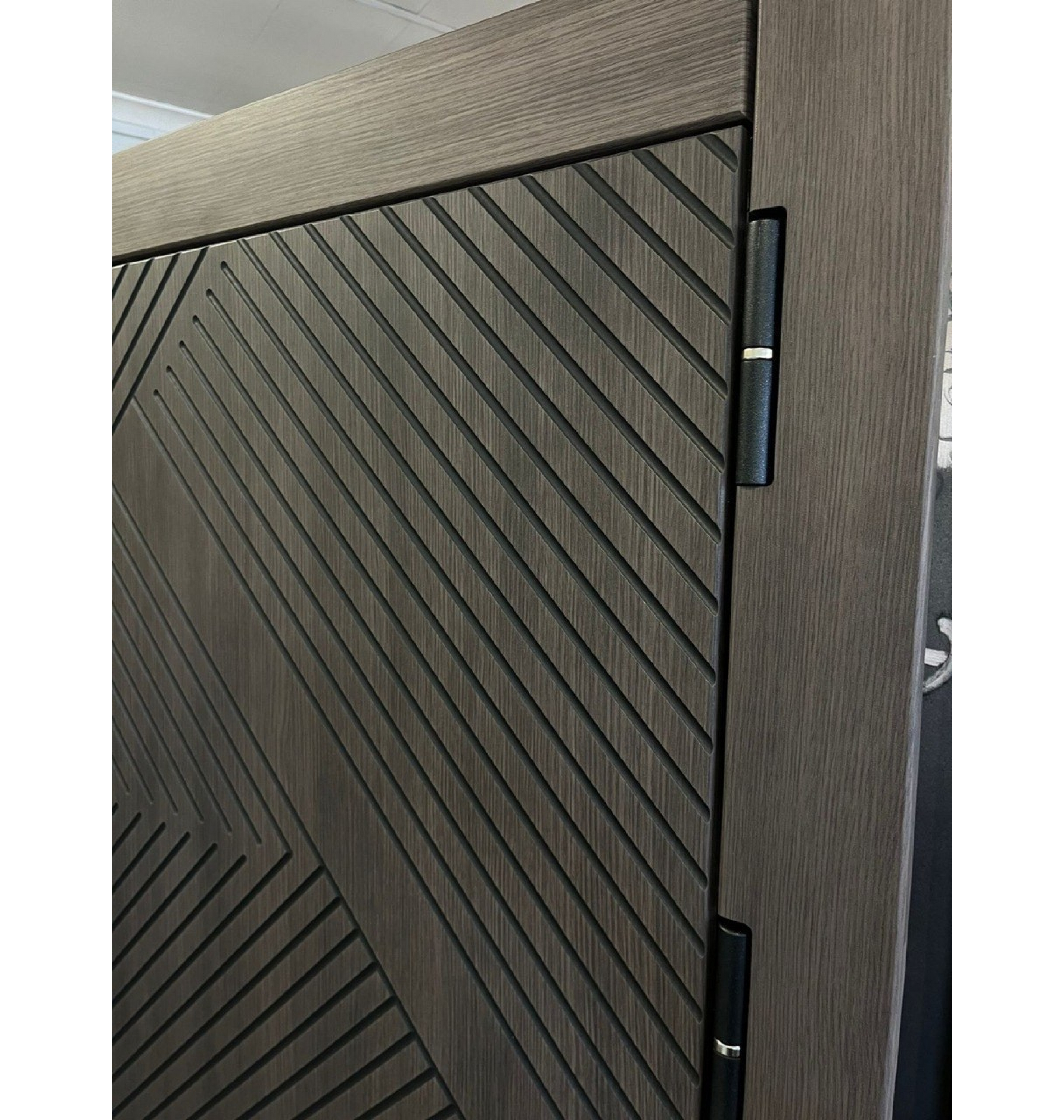 - Снаружи панель МДФ 16 мм, пленка лиственница грей, патина черная по фрезеровке