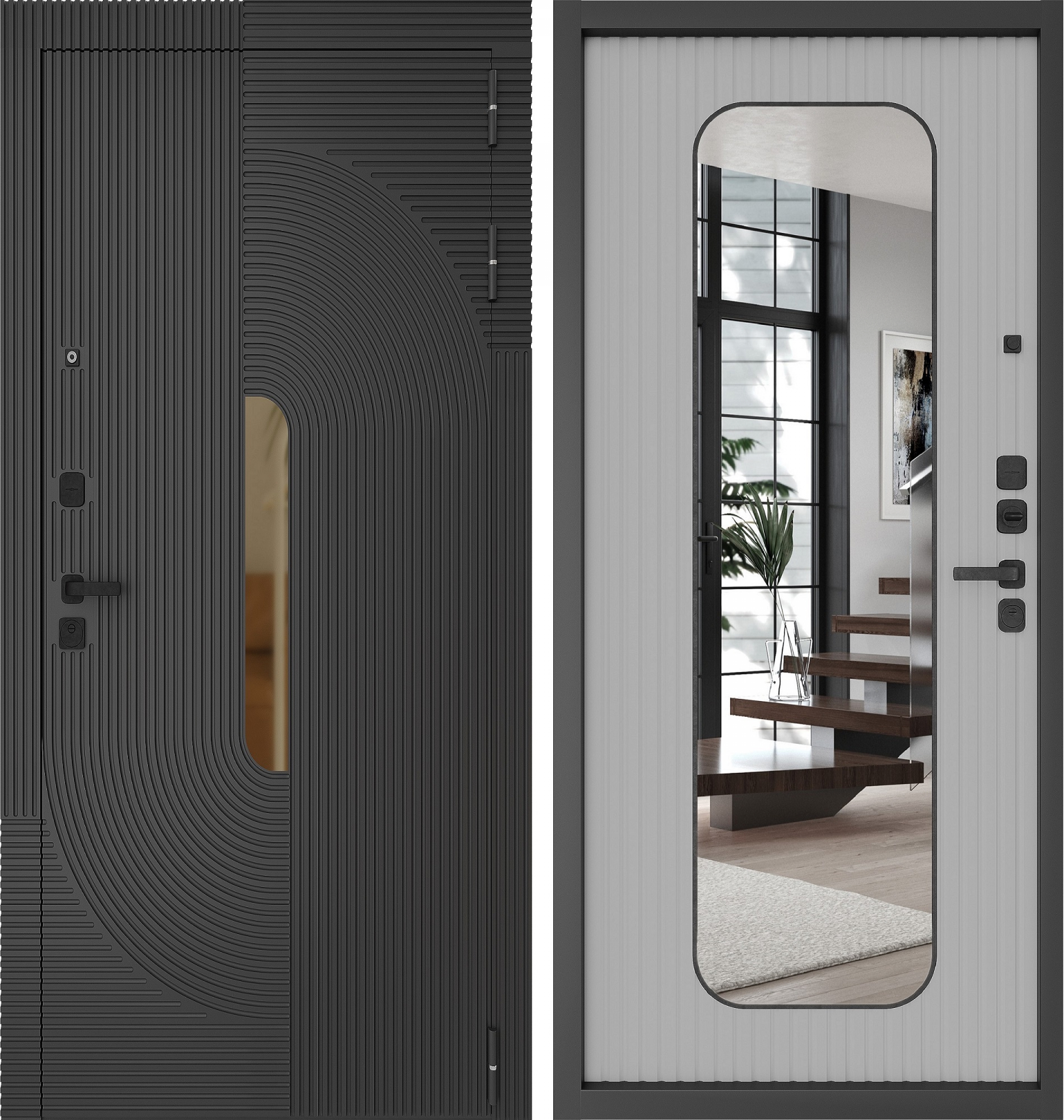 - Внутреннее покрытие: МДФ 10 мм, фрезерованная, Зеркало с черной окантовкой, Эмалит белый