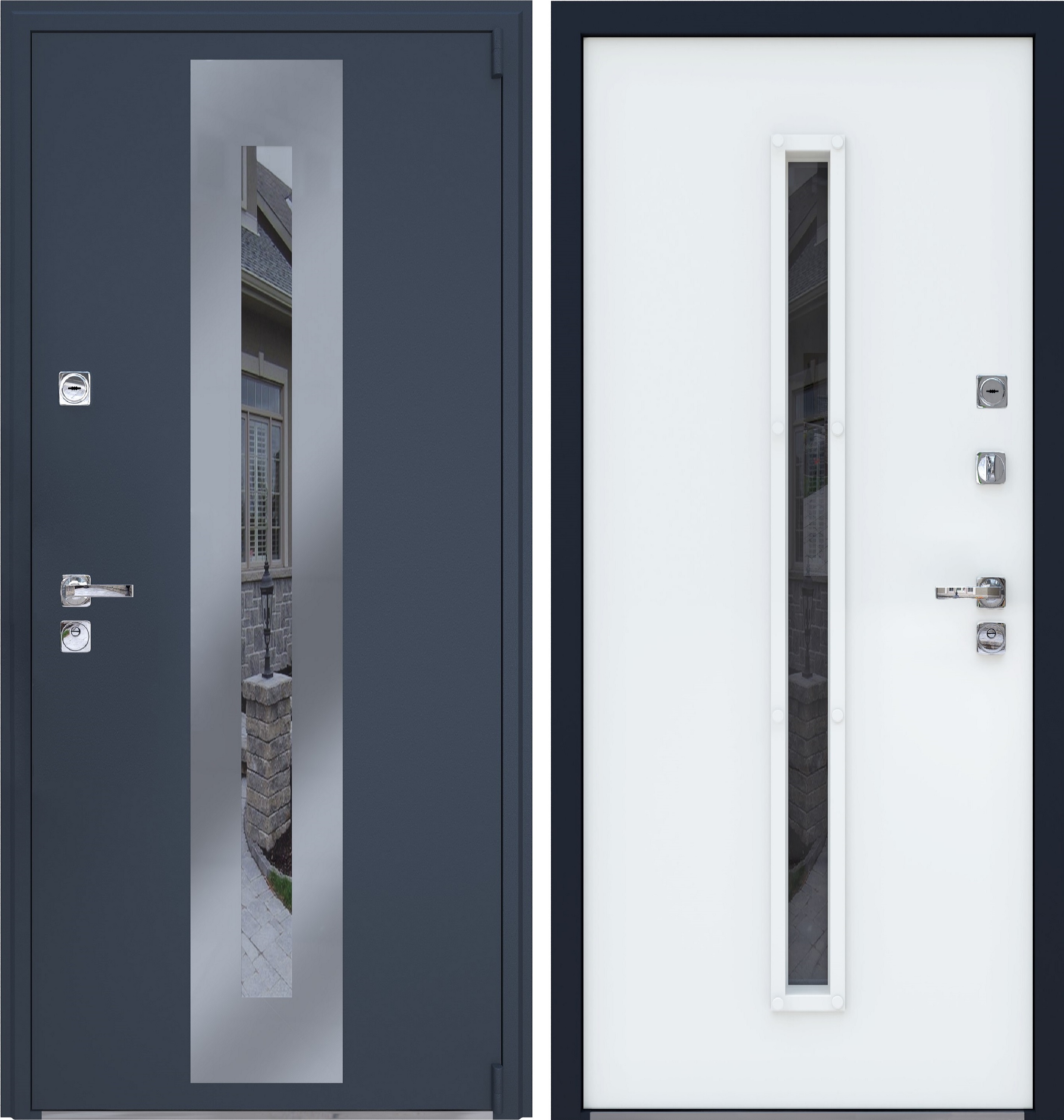 - Внешнее покрытие: Муар графит RAL 7024, Цинкогрунт AkzoNobel, Вставка из нержавеющей стали