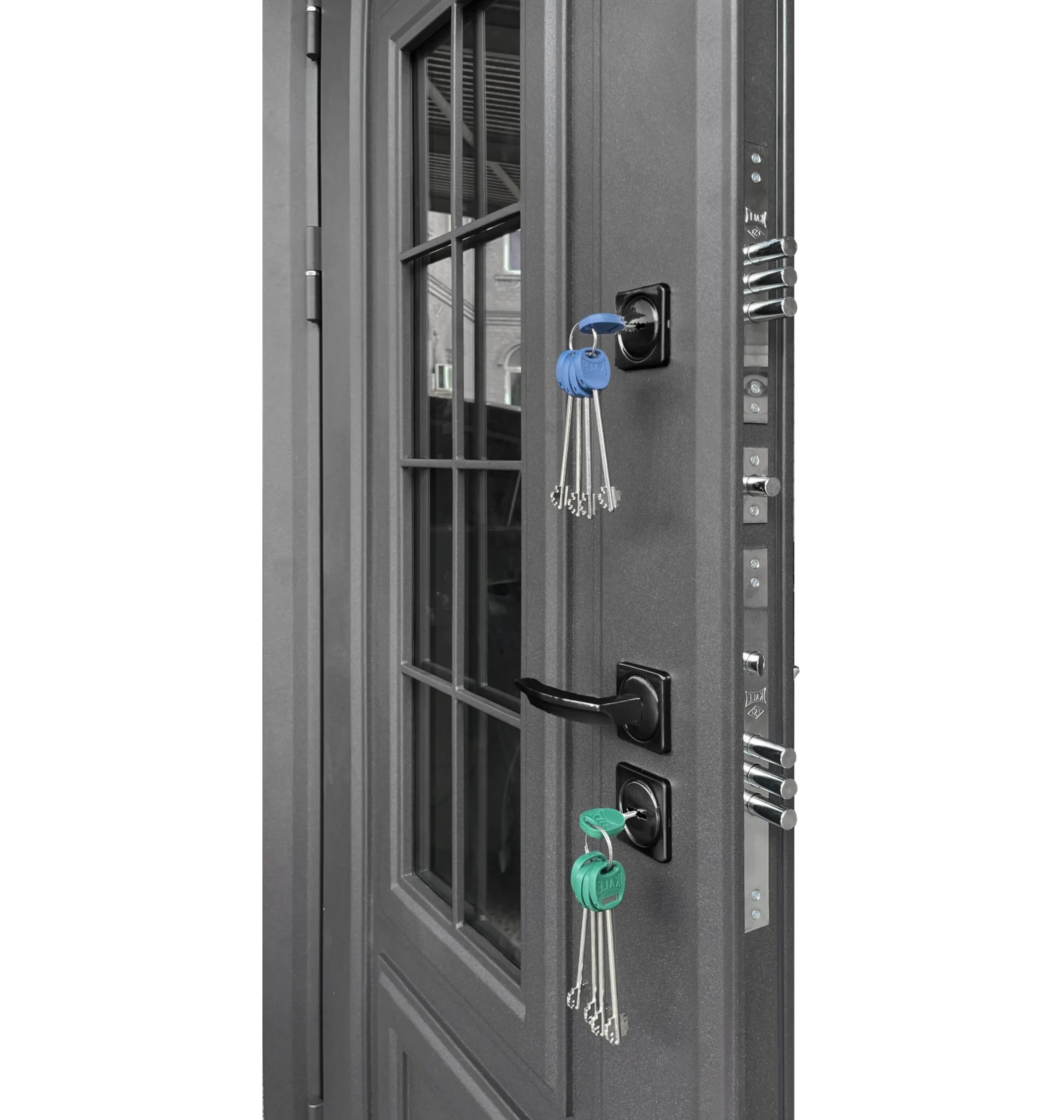 - Осн. замок: СУВАЛЬДНЫЙ KALE 252 + НАКЛАДКИ С АВТОМАТИЧЕСКИМИ ШТОРКАМИ