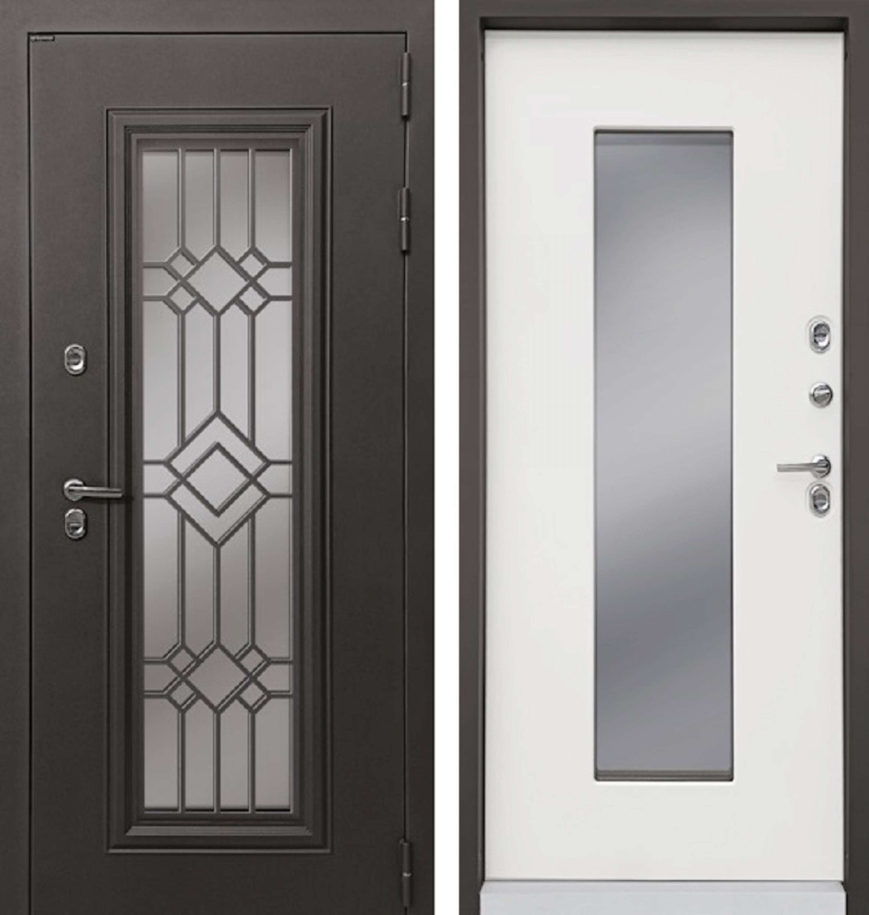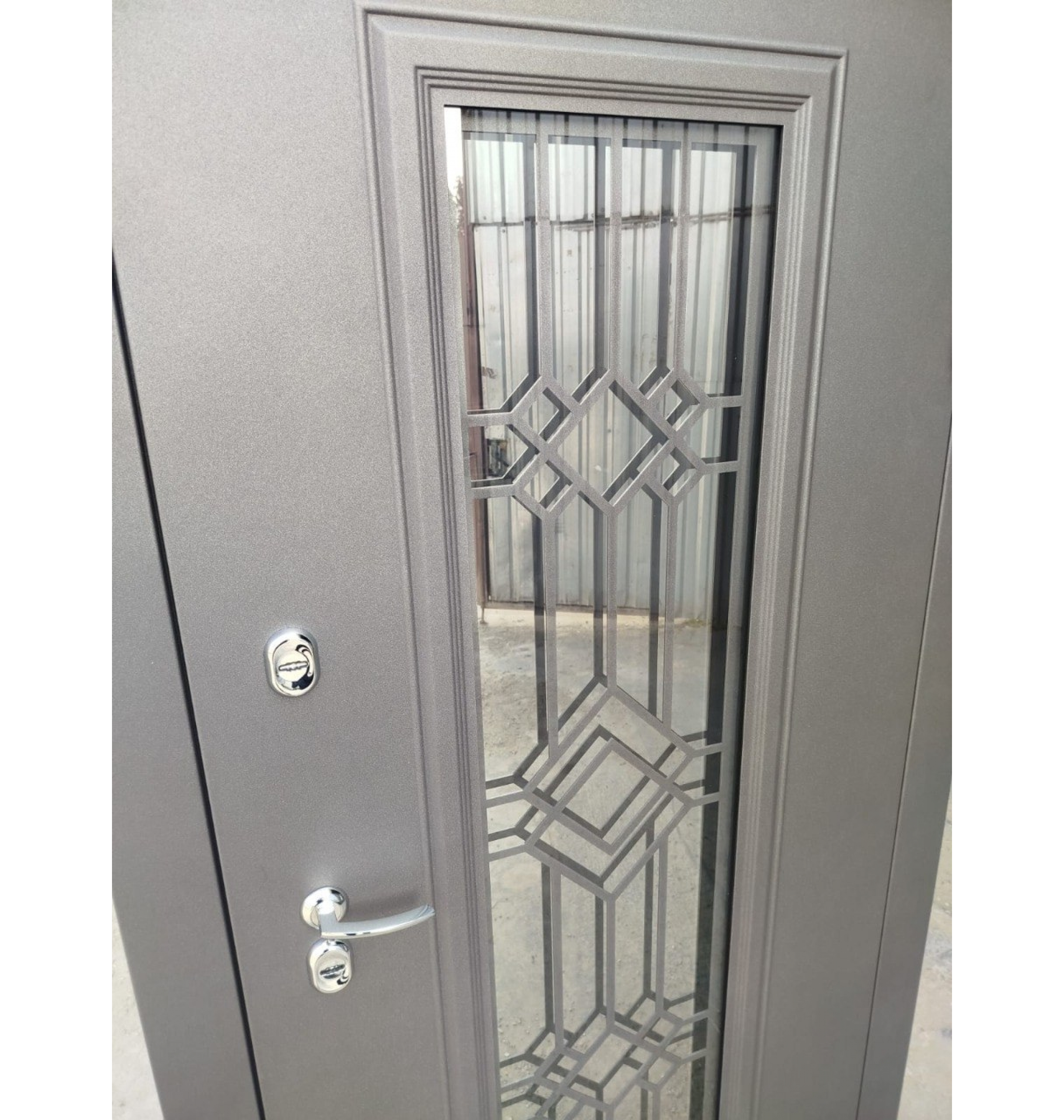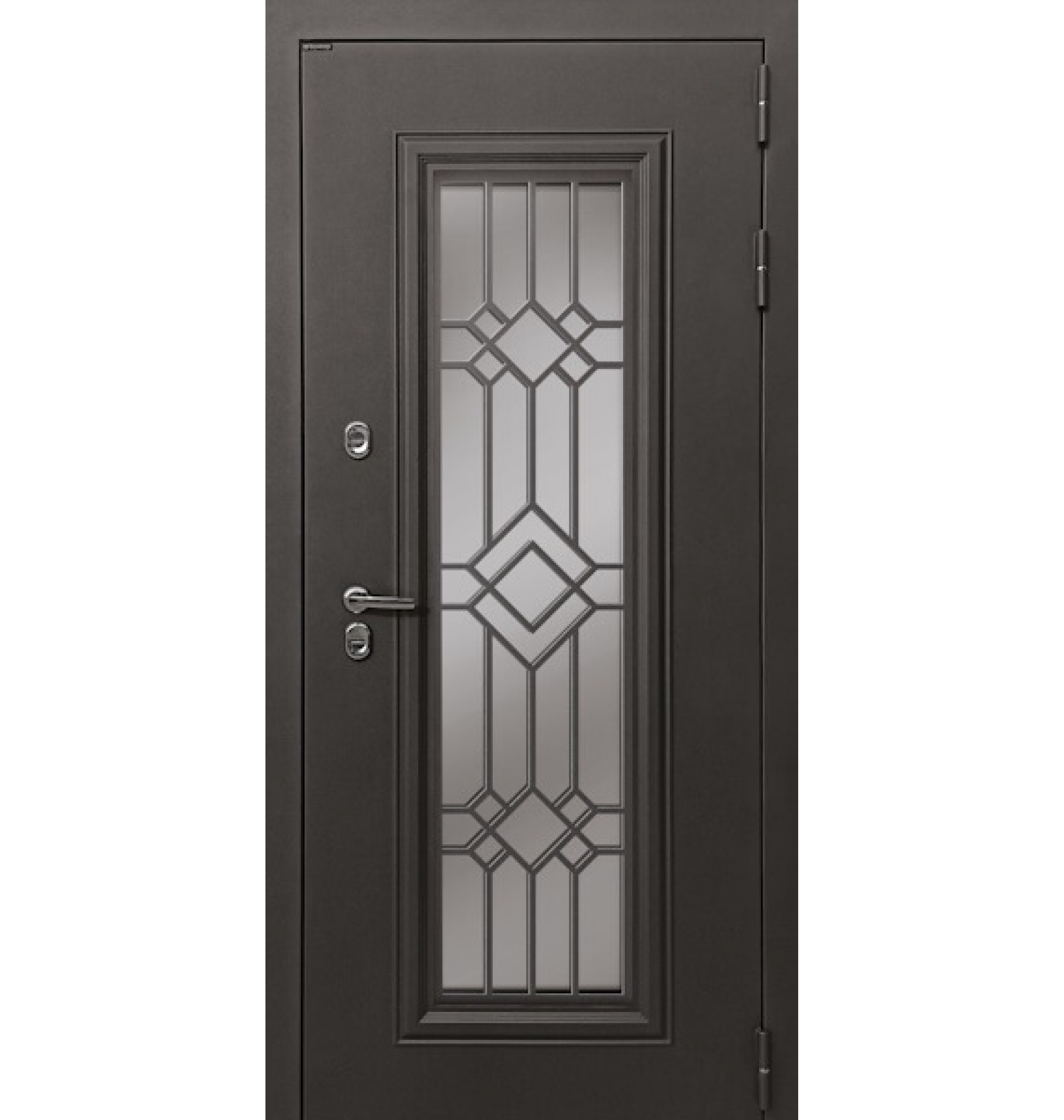 - Стеклопакет зеркальный (рефлектив серебро), внутри стеклопакета декоративный элемент из листа металла 3 мм, покрытие муар бордо